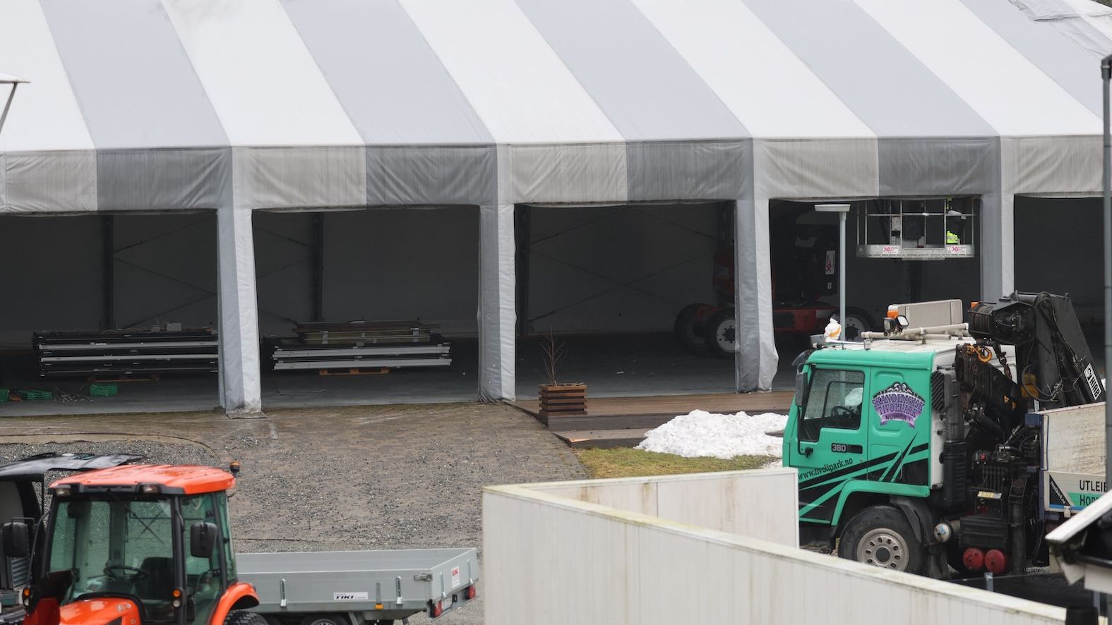 Grått smeltende....Gjersjøen-tåka legger seg over banen og spiser snø. Ikke en vakker dag, men du verden hvor effektivt.